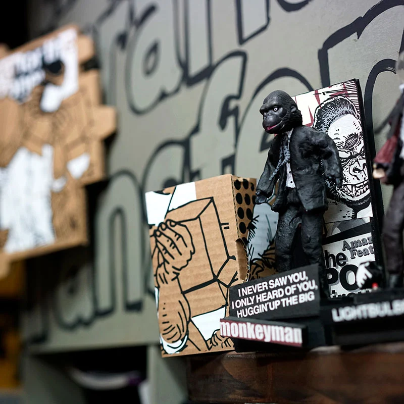 El Manchas disfruta haciendo lo que hace, siempre juega, de hecho, nunca para de jugar al descaro, a animar lo inanimado, desde una goma de borrar “Milan” a la caja de cartón más triste, en esa constante por lo lúdico y la crítica, plasmándolo directamente (en las obras) o bien indirectamente (en sus títulos).