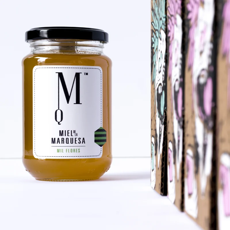 | Contenido | 1 caja edición limitada 50 ejemplares y un tarro de Miel de la Marquesa de 400 gr. |